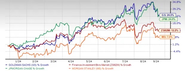 Cổ phiếu của Goldman Sachs Group, Inc. (GS) đã ghi nhận mức tăng trưởng ấn tượng 24,5% từ đầu năm đến nay, vượt trội so với mức tăng trưởng 12,2% của toàn ngành. So với các cổ phiếu cùng ngành như JPMorgan & Chase (JPM) và Morgan Stanley (MS), cổ phiếu GS đang giao dịch ở mức thấp hơn một chút. Trong khoảng thời gian tương tự, JPM đã tăng 24% trong khi MS chỉ tăng 7%.