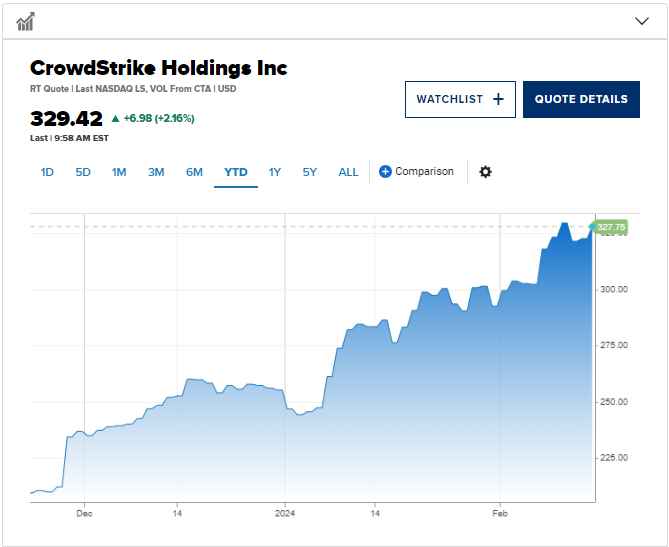 Các công ty chủ chốt trong lĩnh vực này đã bắt đầu gặt hái lợi ích từ nhu cầu tăng mạnh. Cổ phiếu Palo Alto Networks và CrowdStrike đã tăng giá hơn 25% chỉ trong sáu tuần đầu năm sau khi trở thành một trong những cổ phiếu có hiệu suất tốt nhất của Nasdaq-100 vào năm 2023.