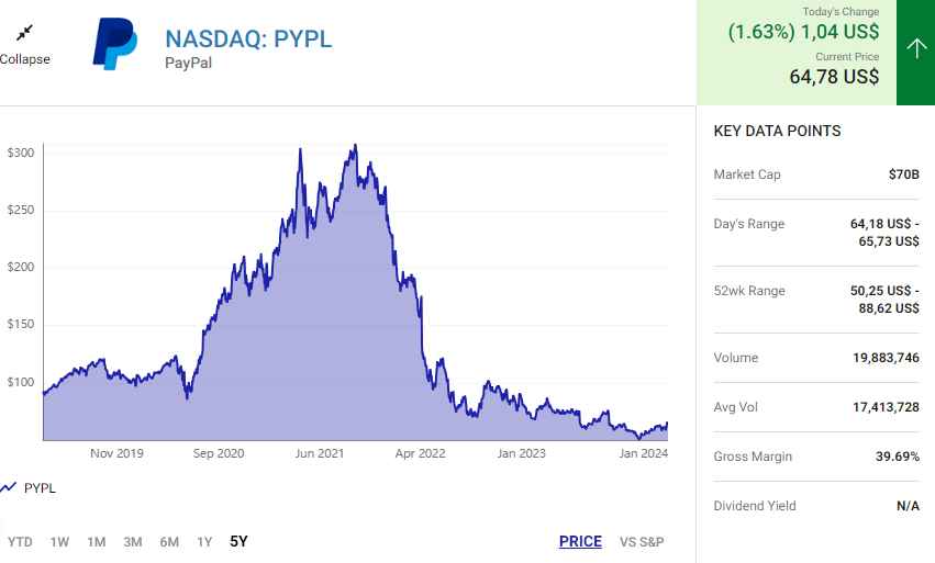 PayPal là công ty thanh toán kỹ thuật số hàng đầu đang gặp phải những khó khăn tương tự như Alibaba. Cổ phiếu của công ty này đã giảm mạnh trước những khó khăn của nền kinh tế khiến khối lượng thanh toán của PayPal giảm sút. Tuy nhiên, Paypal sở hữu một số lợi thế để phục hồi trở lại.