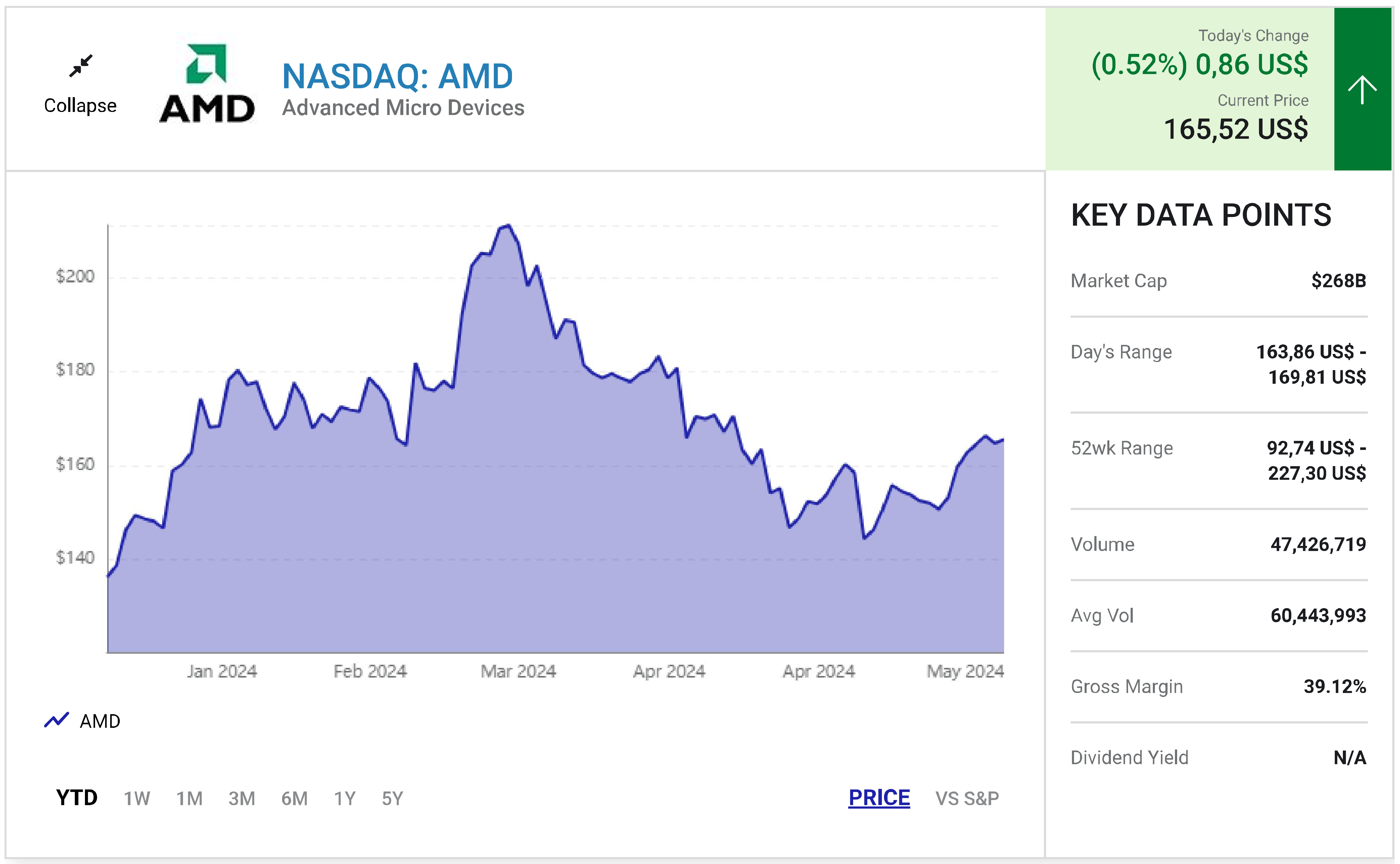 Các sản phẩm của AMD cũng đã nhận được sự quan tâm từ những ông lớn trong lĩnh vực AI như Microsoft và Meta Platforms. Với doanh thu từ mảng trung tâm dữ liệu mới chỉ đạt 2,3 tỷ USD trong quý 1, AMD còn rất nhiều dư địa để tăng trưởng, đặc biệt nếu thị trường chip AI mở rộng quy mô lên hàng trăm tỷ USD.