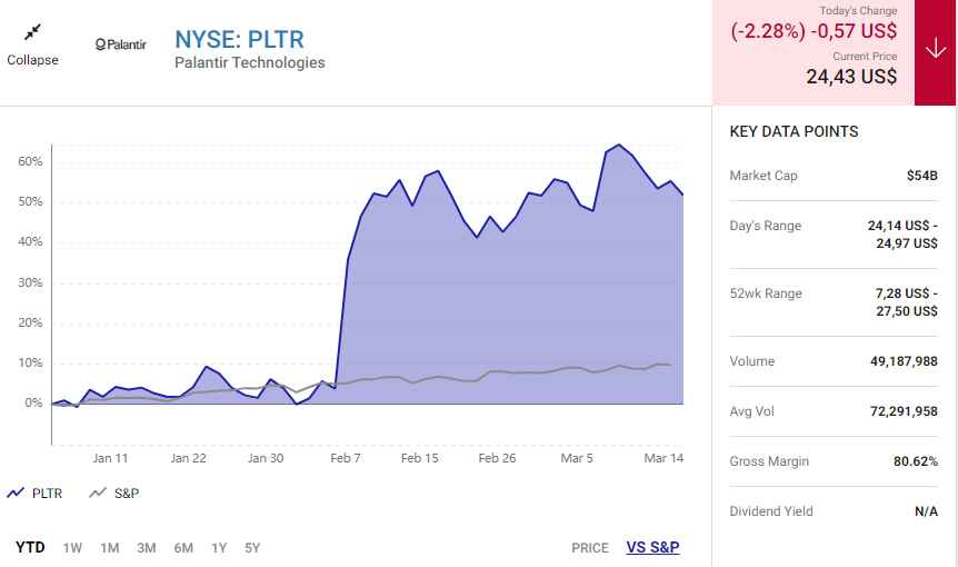 Đầu tiên là Palantir Technologies (PLTR). Tăng giá 239% chỉ sau 12 tháng, Palantir đang giúp nhiều cổ đông trở nên giàu có hơn.