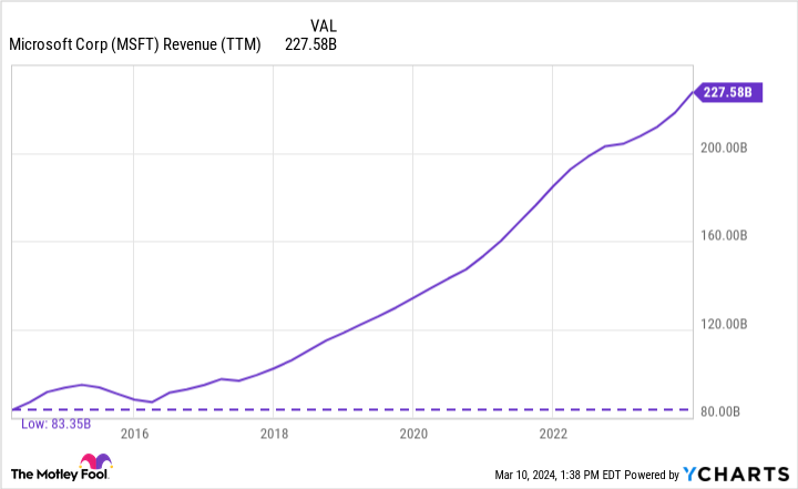 Dữ liệu doanh thu MSFT (TTM) theo YCHARTS