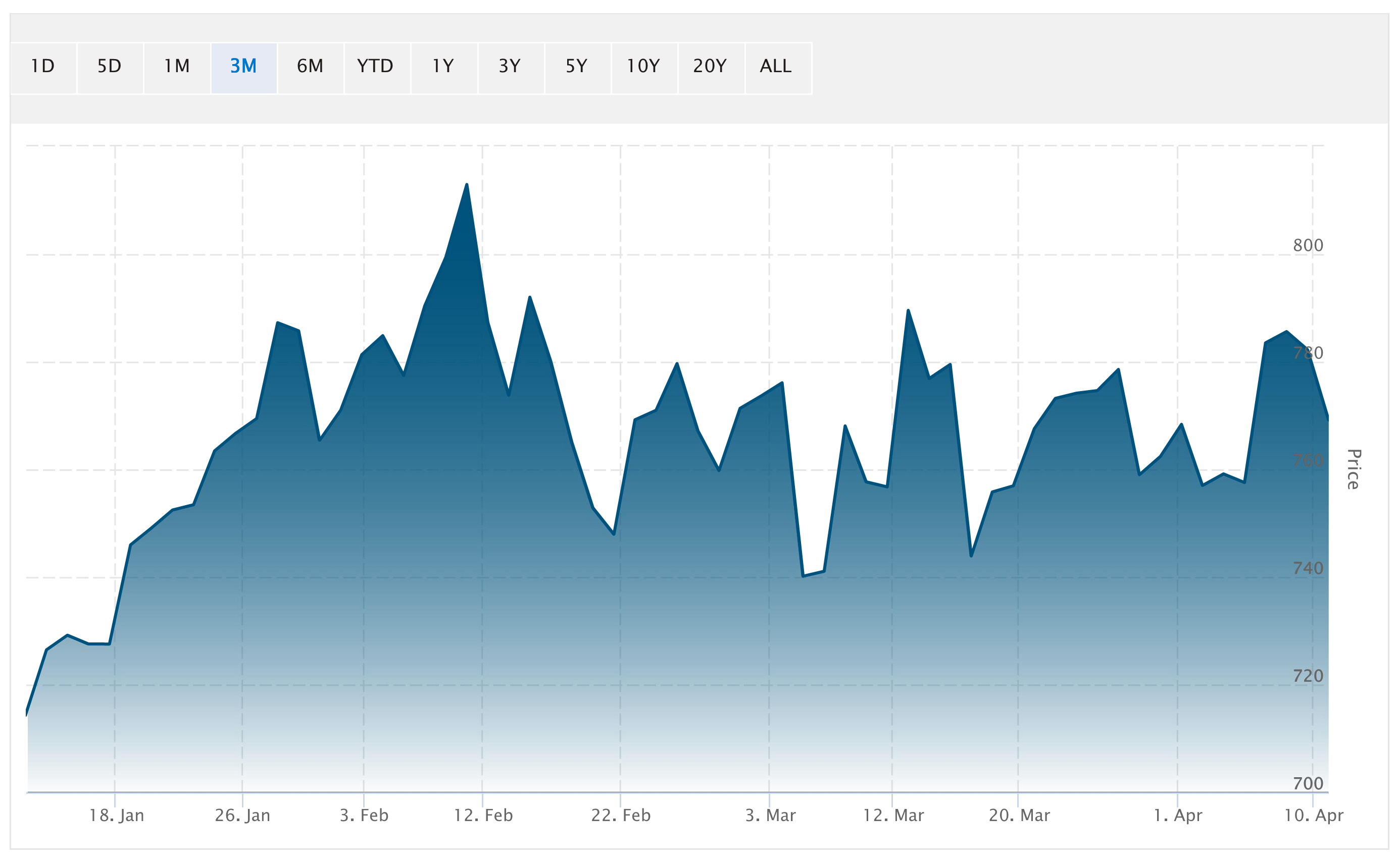 Biểu đồ giá cổ phiếu ServiceNow (NOW)