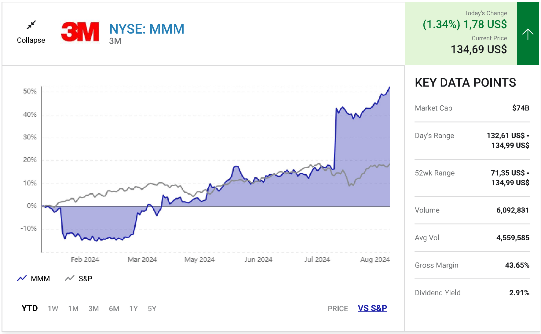 Sau nhiều năm tăng trưởng doanh thu ảm đạm và biên lợi nhuận chỉ ở mức trung bình, những yếu kém của 3M cuối cùng cũng được cải thiện. Việc tách mảng chăm sóc sức khỏe thành công ty con Solventum đã huy động được dòng tiền giải quyết các thủ tục pháp lý và giải thoát 3M khỏi gánh nặng đầu tư nhiều thời gian, tiền bạc và công sức vào một công ty mà không đem lại kết quả nào đáng kể.