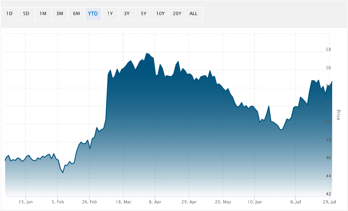 Vụ việc sáp nhập Albertsons đang bị trì hoãn đã thúc đẩy cổ phiếu KR tăng giá. Tính từ đầu năm đến nay, cổ phiếu KR đã tăng 19%.