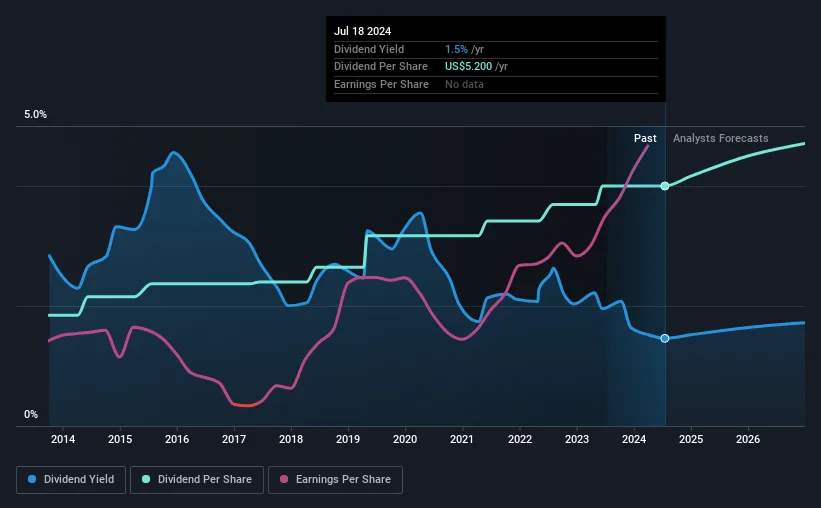 Công ty có lịch sử lâu dài về việc trả cổ tức ổn định. Mức chi trả cổ tức hàng năm trong 10 năm qua đã tăng từ 2,40 USD vào năm 2014 lên 5,20 USD trong năm tài chính gần nhất, tương ứng với mức tăng trưởng kép hàng năm (CAGR) 8,0%. Mức tăng trưởng cổ tức là khá tốt, vì vậy chúng tôi cho rằng điều này có thể mang lại cho nhà đầu tư một khoản thu nhập bổ sung đáng kể trong danh mục đầu tư của họ.