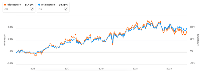 Trong số 5 cổ phiếu dược phẩm lớn nhất theo vốn hóa thị trường, tỷ suất cổ tức của Johnson & Johnson chỉ đứng sau Roche với 3,44%. Trong thập kỷ qua, tổng lợi nhuận trên cổ phiếu của JNJ, bao gồm cổ tức, đã gấp đôi so với mức tăng trưởng giá cổ phiếu tương đối thấp.