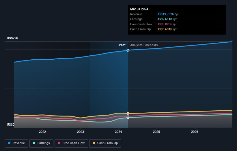 Không có gì lạ khi thấy giá cổ phiếu giảm mạnh nếu hai nhà đầu tư tổ chức lớn cố gắng bán hết cổ phiếu cùng một lúc. Vì vậy, cần kiểm tra quỹ đạo thu nhập trong quá khứ của Colgate-Palmolive. Biểu đồ dưới đây cho thấy thu nhập của công ty có xu hướng tăng trưởng tốt trong dài hạn.