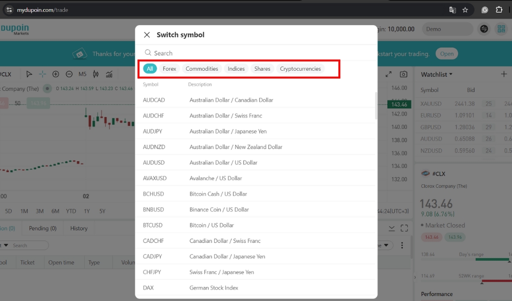 Các loại tài khoản và nền tảng giao dịch Dupoin