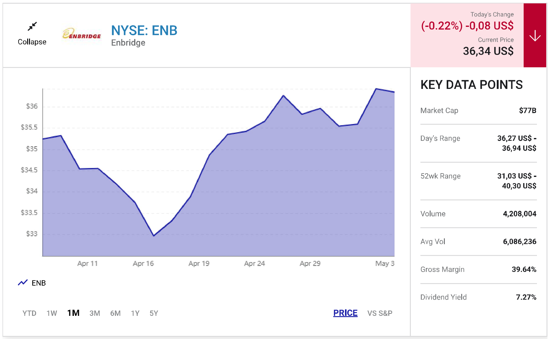 Công ty cơ sở hạ tầng năng lượng này cũng tiếp tục thực hiện kế hoạch chiến lược của mình trong năm nay. Enbridge đã hoàn tất việc mua lại Công ty Khí đốt Đông Ohio vào tháng 3, thương vụ đầu tiên trong số ba thương vụ mua lại công ty khí đốt tự nhiên từ Dominion mà công ty dự kiến sẽ hoàn tất trong năm nay. Công ty cũng tham gia vào một liên doanh kết nối lưu vực Permian với các trung tâm nhu cầu ngày càng tăng dọc theo bờ biển vùng Vịnh duyên hải Mexico của Mỹ. Thương vụ này sẽ ngay lập tức thúc đẩy dòng tiền đồng thời nâng cao triển vọng tăng trưởng dài hạn. Enbridge cũng đã hoàn tất việc bán một số tài sản không phải cốt lõi. Công ty có kế hoạch tái đầu tư số vốn đó vào việc mua lại các công ty khí đốt.