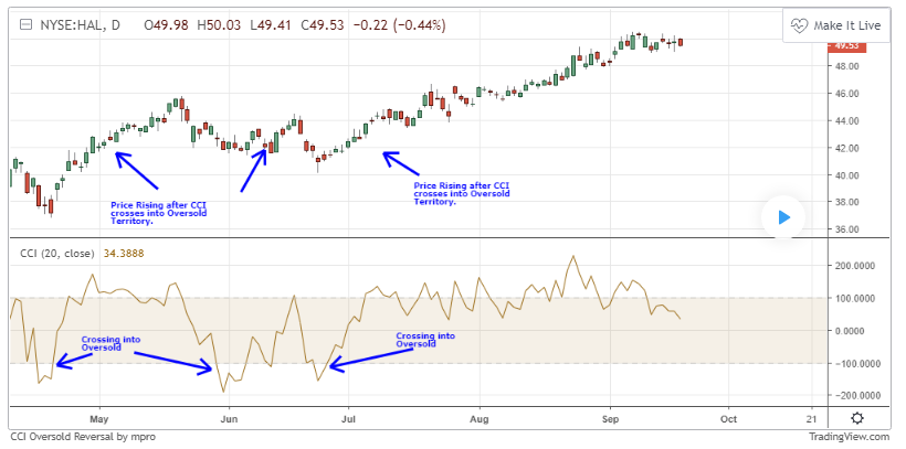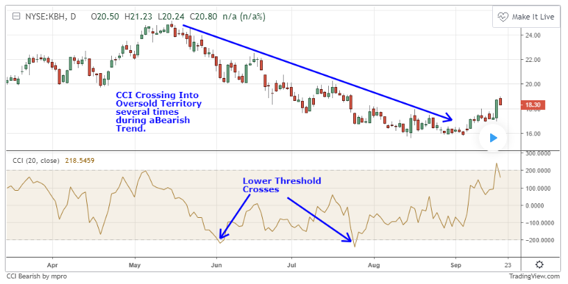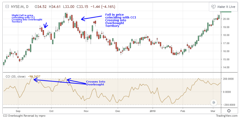 - Thông thường, tình trạng quá mua – quá bán được xem như một dự báo đảo chiều. Tuy nhiên, khi sử dụng CCI, tình trạng quá mua và quá bán có thể là dấu hiệu của độ mạnh, tức là xu hướng hiện tại có thể vẫn đang tăng cường và tiếp tục.