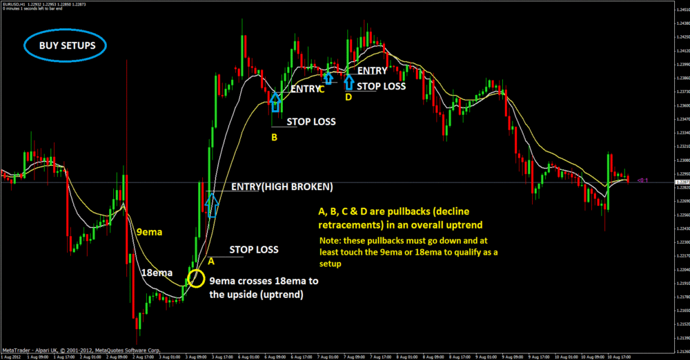 chạm đường EMA 9 hoặc EMA 18 để vào lệnh.