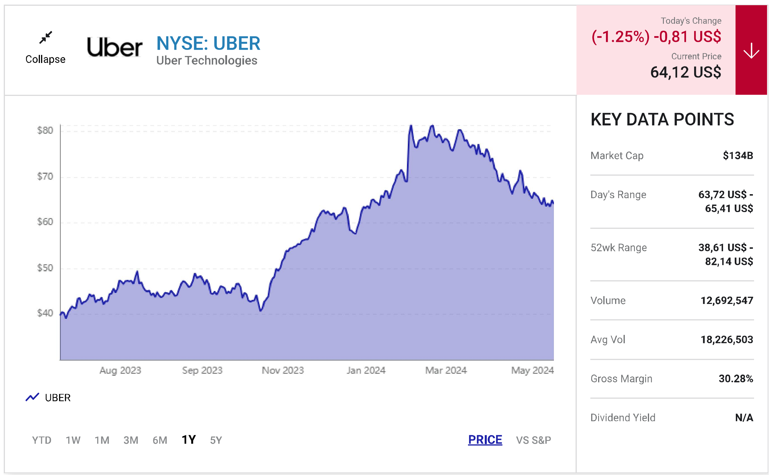 Đà giảm giá gần đây càng khiến cho cổ phiếu trở nên hấp dẫn hơn đối với các nhà đầu tư. Trong quý 1, Uber đã chính thức hoạt động kinh doanh có lãi từ mức lỗ một năm trước đó. Không những vậy, công ty đang bắt đầu bước vào giai đoạn tăng trưởng lợi nhuận mạnh và đây chính là xúc tác cho cổ phiếu. Theo dự báo đồng thuận của Phố Wall, thu nhập của Uber sẽ tăng trưởng với tốc độ hàng năm là 45%. Nếu Uber đạt EPS dự báo là 4,30 USD vào năm 2026 và cổ phiếu vẫn đang giao dịch ở mức P/E dự phóng hiện tại là 32, thì các nhà đầu tư sẽ nhận được lợi nhuận đầu tư bằng với mức tăng trưởng thu nhập của công ty.