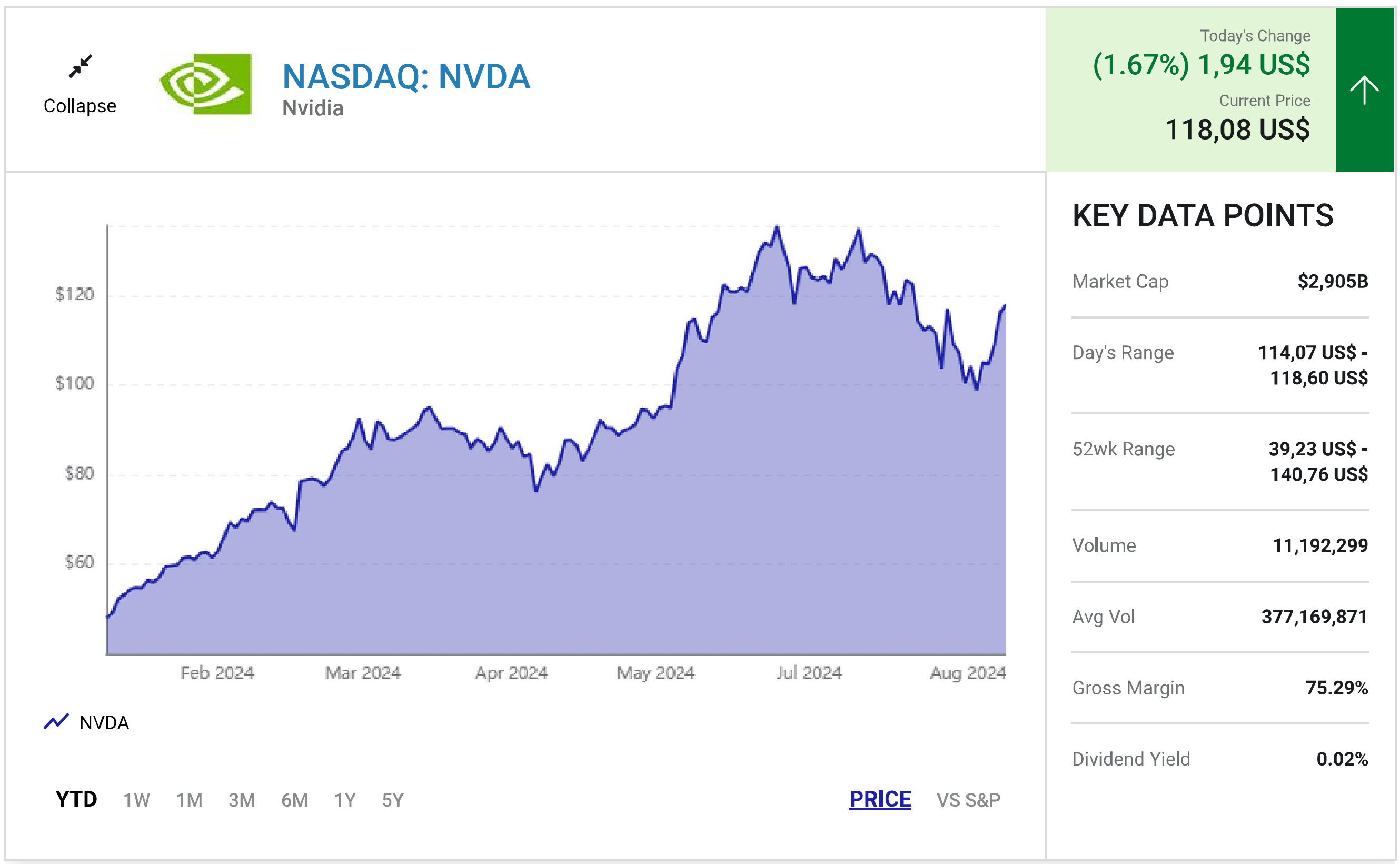 Xu thế tăng chi tiêu cùng với sự bi quan của thị trường và viễn cảnh về cú “hạ cánh mềm” của Cục Dự trữ Liên bang Mỹ (Fed) đã giáng một đòn mạnh vào Nvidia, khiến cổ phiếu của công ty giảm hơn 22% kể từ ngày 10 tháng 7. Nhưng bạn biết gì không? Đây là tin tốt và là cơ hội mua vào cho những ai vẫn tin vào cổ phiếu này. Với việc công ty chuẩn bị công bố số liệu Q2 vào ngày 28 tháng 8, đây là hai lý do để mua cổ phiếu Nvidia trước thời điểm này.