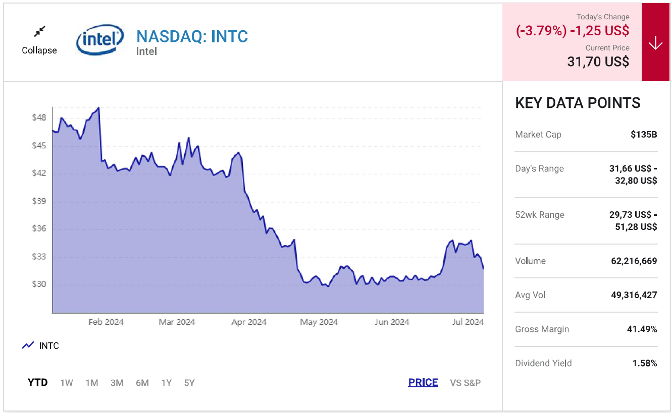 Nhưng sự tự mãn sau nhiều năm thống trị thị trường chip đã khiến công ty sa sút và đánh mất ngôi “vua chip”. Kết quả là cổ phiếu của công ty đã giảm 28% trong 5 năm qua, cùng với đó là mất thị phần và giảm thu nhập.