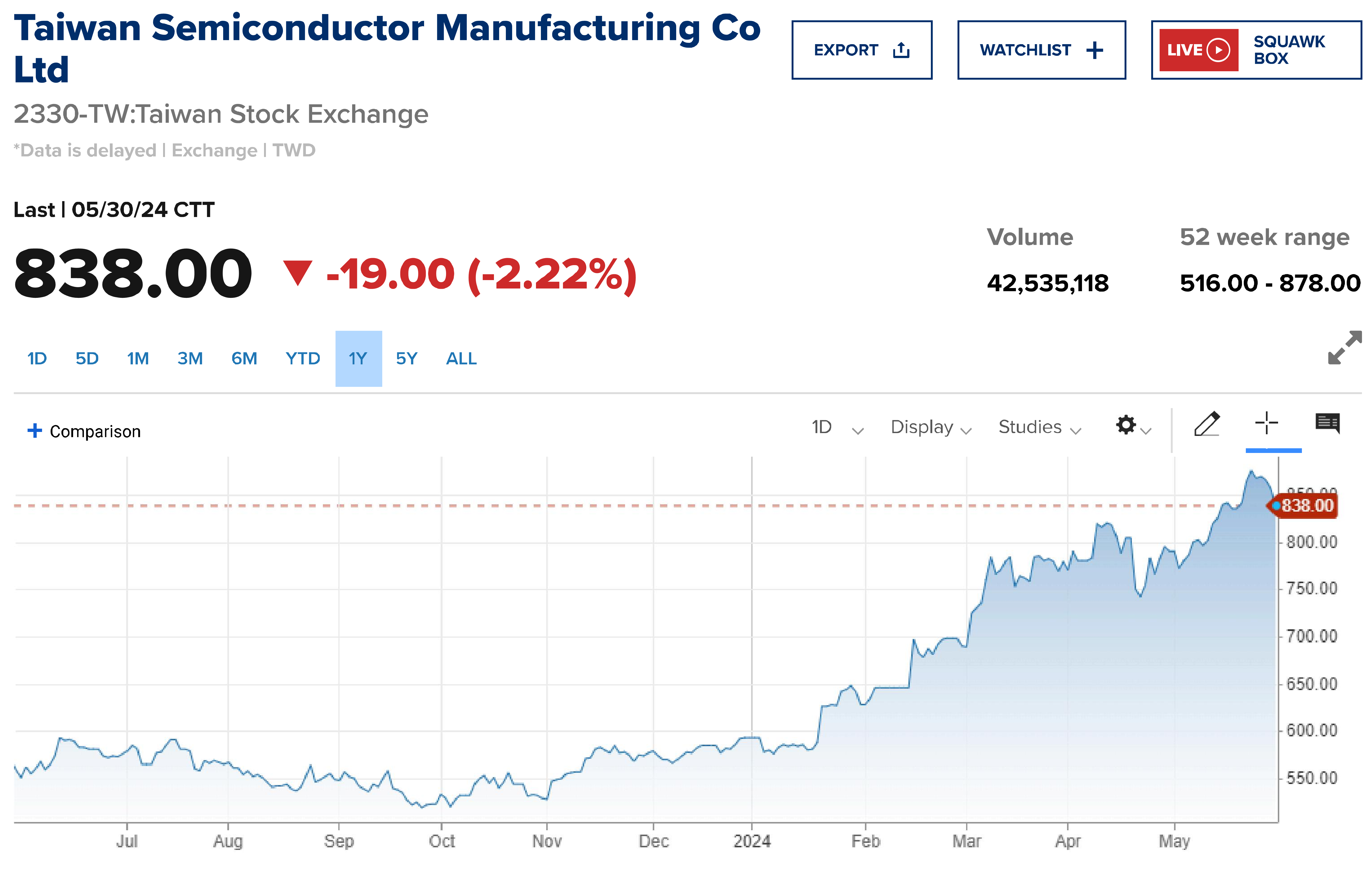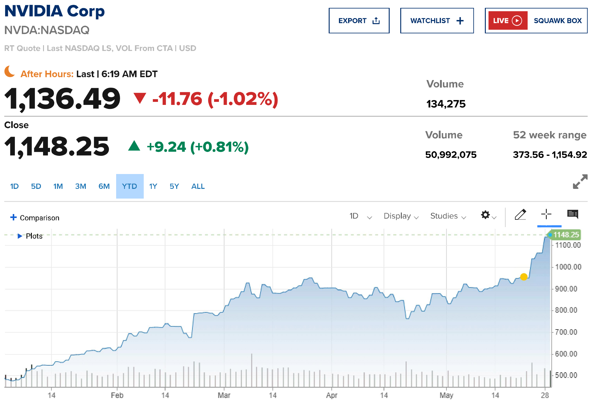 Cổ phiếu của nhà sản xuất chip này lần đầu tiên vượt qua mốc 1.000 USD vào thứ Tư tuần trước và đã tăng khoảng 170% trong năm qua.