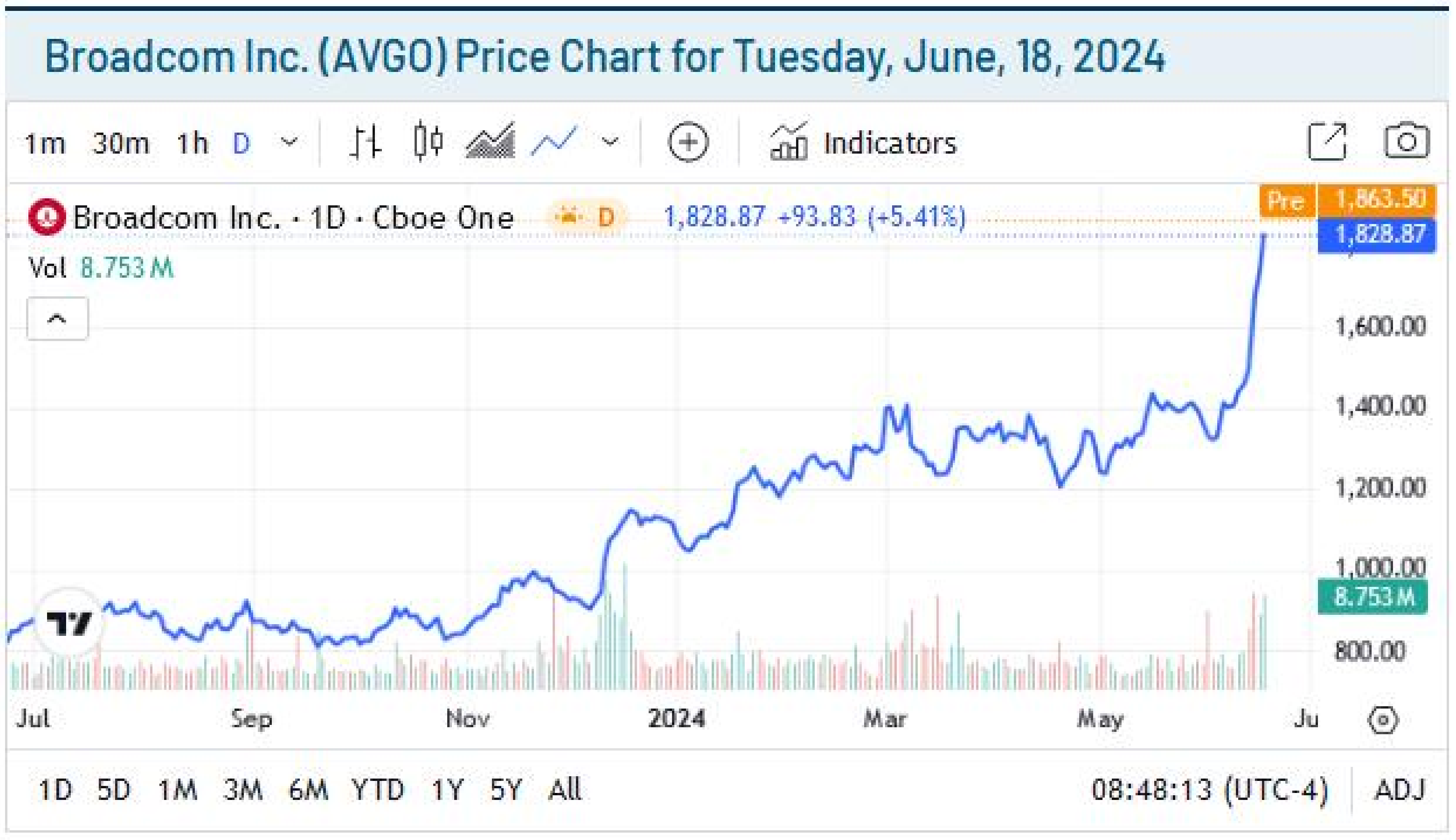 Ngoài ra, các nhà đầu tư còn có một lý do khác nữa để mua cổ phiếu vào mùa hè này: Broadcom sẽ tiến hành chia tách cổ phiếu theo tỷ lệ 10:1. Mặc dù việc chia tách không làm tăng giá trị của công ty, nhưng điều đó giúp các nhà đầu tư bán lẻ dễ tiếp cận cổ phiếu AVGO có mức giá hơn 1.700 USD này.