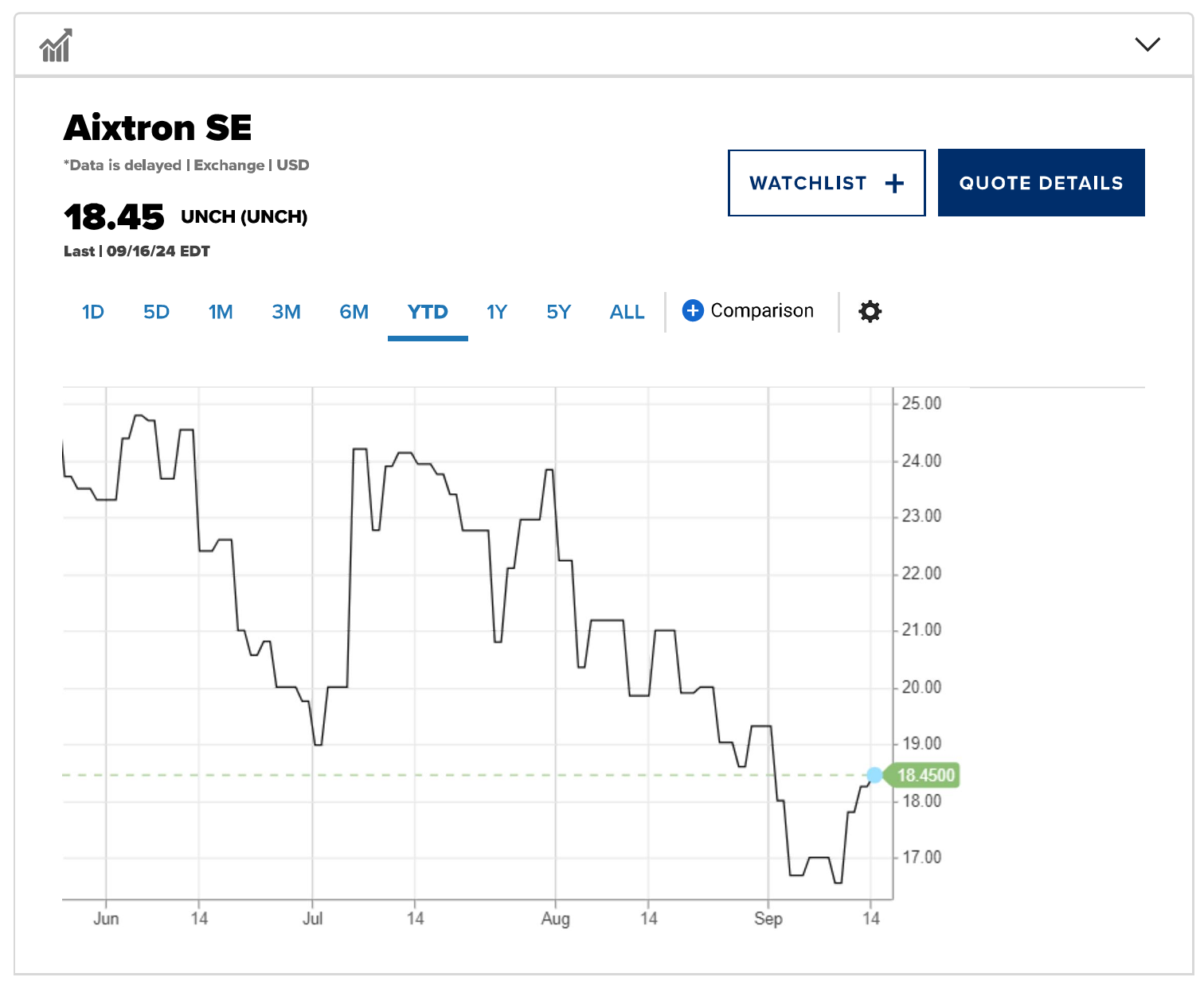 Biểu đồ giá cổ phiếu Aixtron