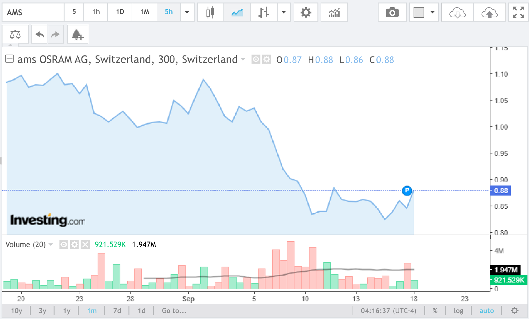 Biểu đồ giá cổ phiếu Ams OSRAM.
