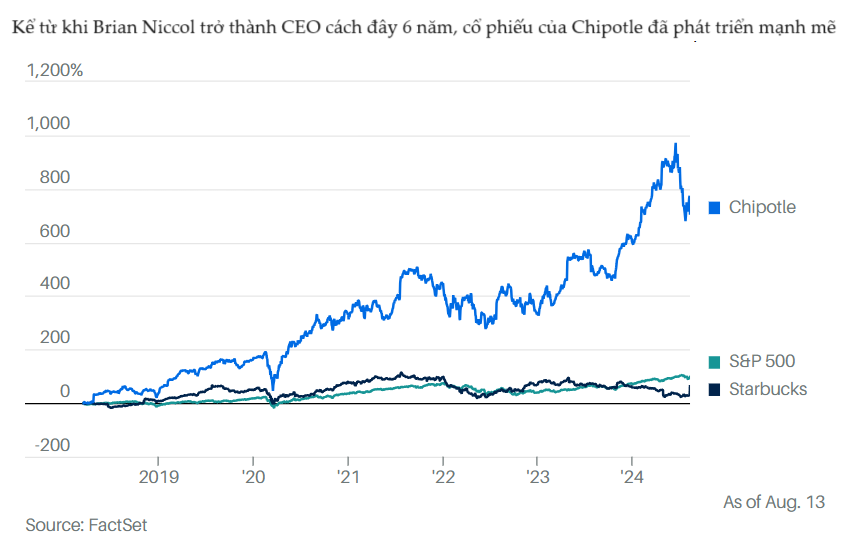Cổ phiếu của Starbucks là cổ phiếu có hiệu suất hoạt động tốt nhất nhóm S&P 500 trong ngày 13/08. Trong khi đó, giá của Chipotle đã giảm 7,5%.